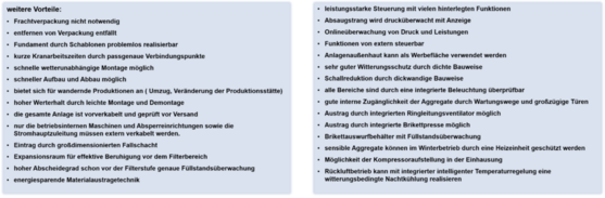 Alles in allem, kann die Filteranlageninstallation und Inbetriebnahme auf ca. 2-3 Tage reduziert werden.