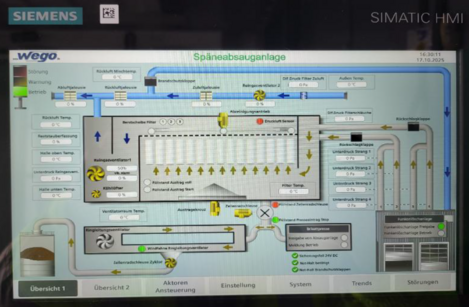 •die Temperaturen in der Absauganlage wie auch in der Halle werden erfasst