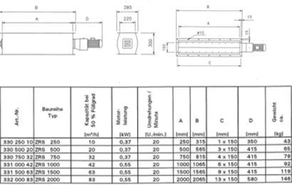 | TYP | LÄNGE MM | BREITE MM | KAPAZITÄT M³/H |