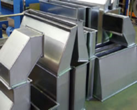 Unsere Lüftungskanäle werden standardmäßig in verzinkter Ausführung angeboten und sind in den Blechstärken 0,75 bis 1,25 mm erhältlich. Für spezielle Anforderungen fertigen wir Kanäle und Formteile mit SBM Flanschen auch in Blechstärken bis zu 2 mm.